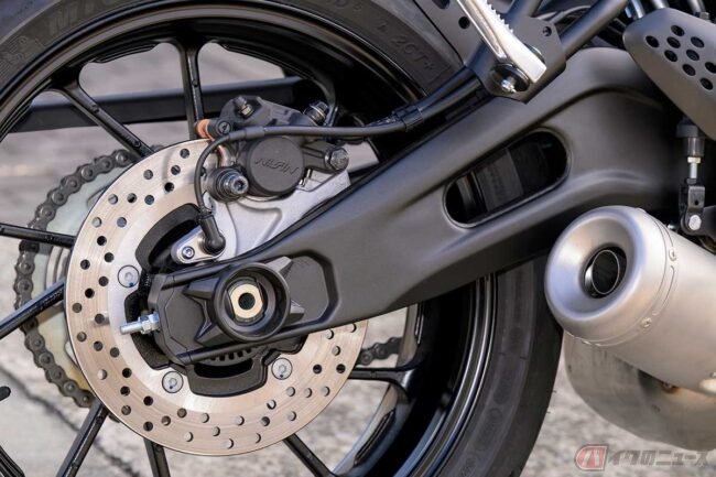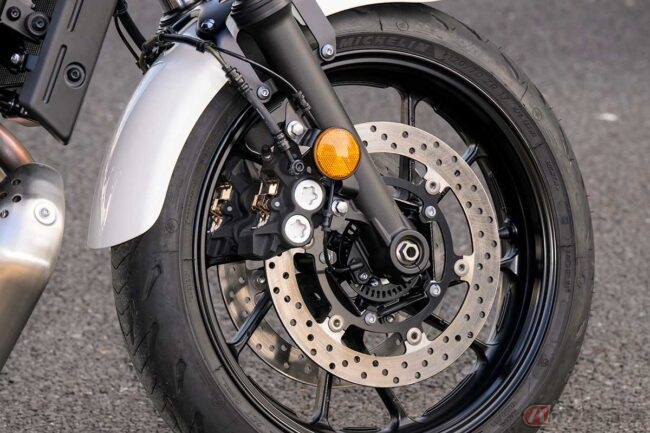 ホイールベース(前後の車輪の距離)は1405mmで、これは大型バイクとしてはかなりコンパクトな設計。