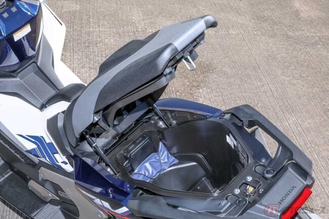 シート下にはフルフェイスが収まる22Lの収納があり、センタースタンドも標準装備で旅の道具としての実力も申し分なし!