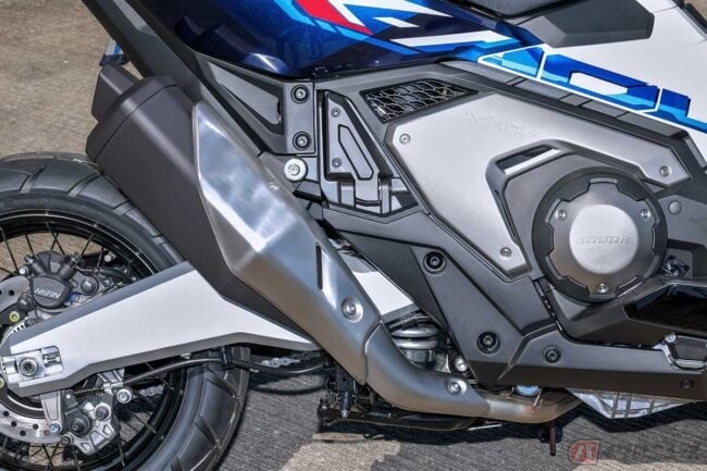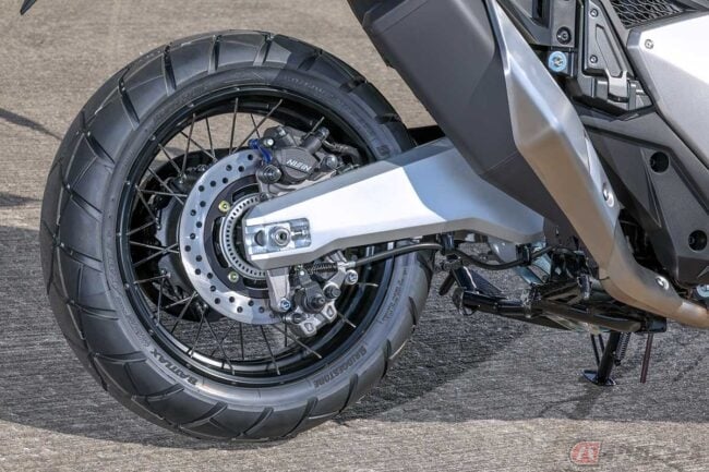 さらにフロント17インチ、リア15インチホイールという組み合わせが、アドベンチャーバイクのような安定感と軽快な旋回性を両立させている。