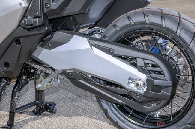 一般的なスクーターは、エンジンと後輪が一体となって動く「ユニットスイング式」。でも「X-ADV」は、普通のミッションバイクと同じようにエンジンがフレームにガッチリ固定されていて、その後ろに独立した「スイングアーム」がつながっている構造なんだ。