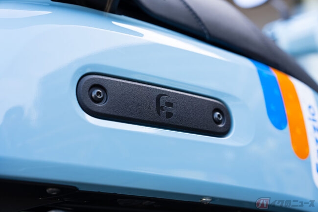 エクステリアは張り出しを抑えたシンプルな面構成で、街中の走行にもマッチします。ヘッドランプやテールランプ、メーターパネルからカラビナ型フックに至るまで、各部のディテールがオーバル(楕円)モチーフで統一されており、一目でファツィオと認識できる象徴的なアイコンとなっています。