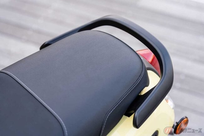 実用面では、車両重量97kgという軽量な車体により、取り回しや押し歩きも軽快です。シート高は765mmで、足を下ろしやすいシート形状と相まって良好な足つき性を確保しています。