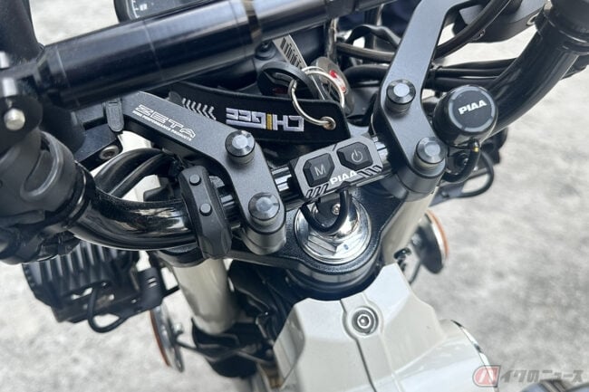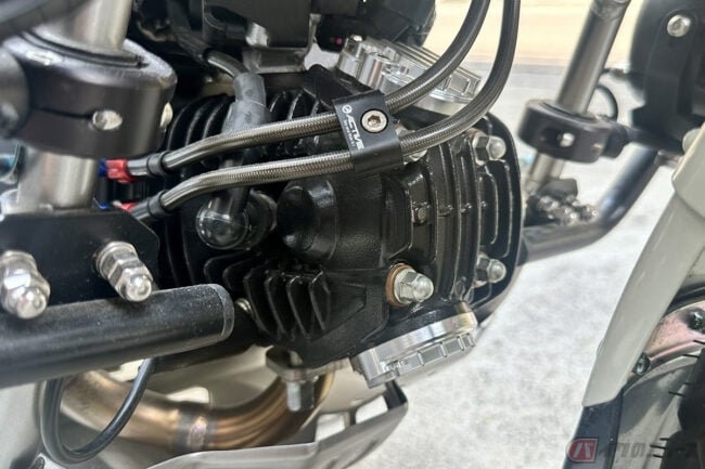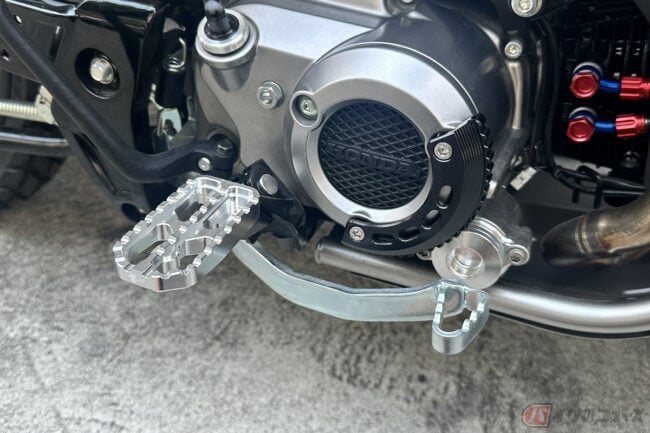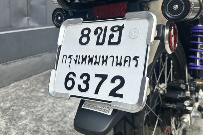しかし、このCT125カスタムは単なる日本の模倣ではありません。そこにはタイ独自の文化と感性が息づいており、先の日本製パーツの中に、今タイで熱狂的な支持を集めるタイブランド「Ryu Royal」のパーツが盛り込まれているのが、その象徴です。