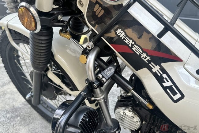 今回紹介するCT125カスタムには、日本製のカスタムパーツがふんだんに装着されており、「キタコ」、「武川」、「ヨシムラ」、「Gクラフト」などなど、その品質とデザイン性の高さからタイのカスタムシーンでも絶大な信頼を得ており、女性がブランド品に憧れるように日本製のカスタムパーツを装着しているとタイのカスタムライクな人々からは羨望の眼差しで注目を集めるほど。