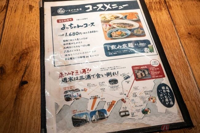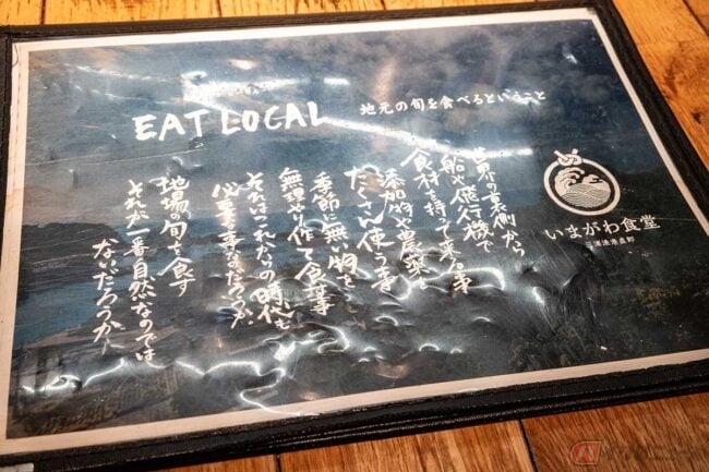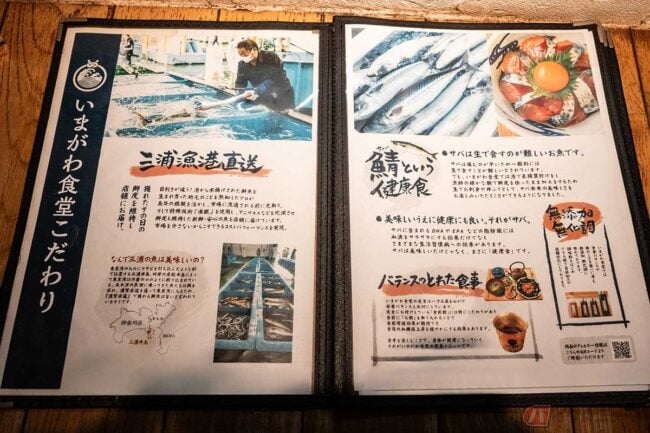 メニューを読むと、「獲れたその日の鮮度を維持し店舗にお届け」とあり、鯖の鮮度を保ったまま加工しているなど「いまがわ食堂こだわり」が書いてあります。テーブルに置いてある調味料も無添加無化調だそうです。