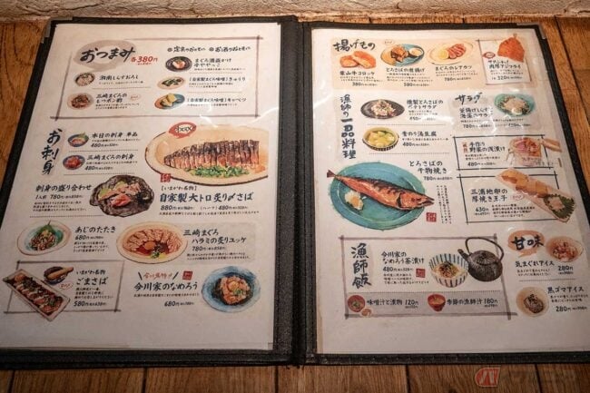 ここで恒例の葛藤が始まります。気持ち的には「ごまさば丼」に完全に持っていかれてますが、使命感としては「肉厚アジフライ定食」。いつも通り悩みみながらメニューのページをめくると、単品があるではないですか! しかも定食と同じ「肉厚アジフライ」です。