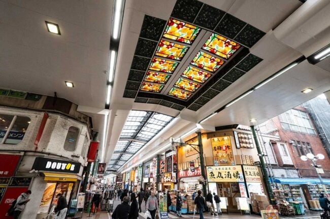 まだかなり時間があるので、駅周辺で昼ごはんを食べようと「川崎駅東口広場地下駐車場」にバイクを停めます。駐車場から地上に出ると目指す「銀柳街」はすぐ近く。このアーケード商店街に三浦直送の魚が食べられる店があるという情報を得て向かいました。