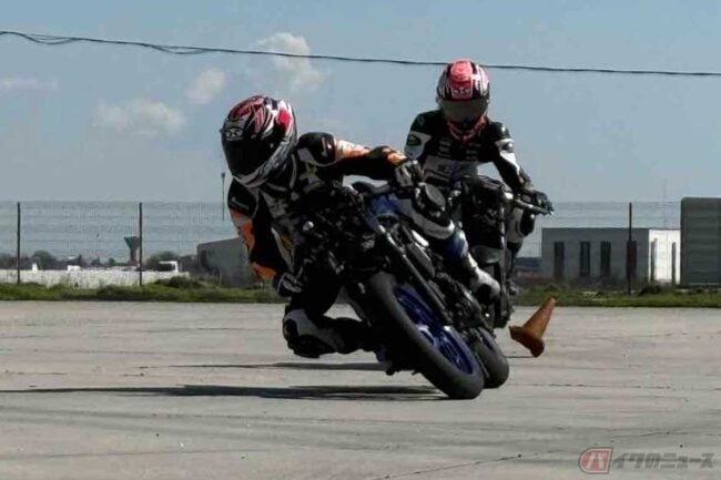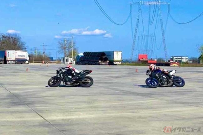 2日目は駐車場を使ったジムカーナのようなトレーニングを行いました。パイロンを置いてサーキットのような形にして、それぞれ課題を持ってトレーニングしました。