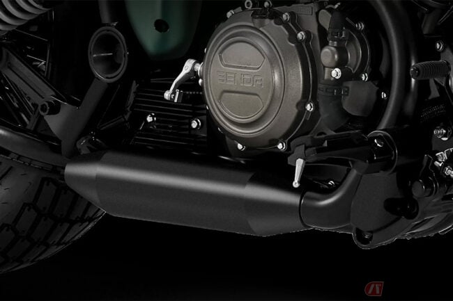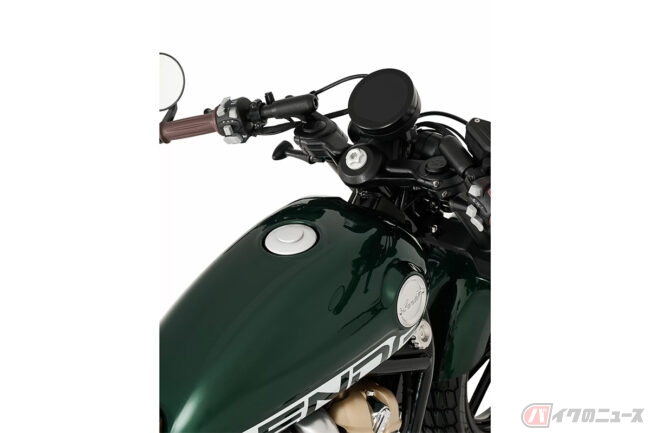 テレスコピックフォークに独自のリンク機構を追加したフロントサスペンションがとくに目を引く「ナポレオン・ボブ250」の価格(消費税10%込み)は84万7000円となっています。