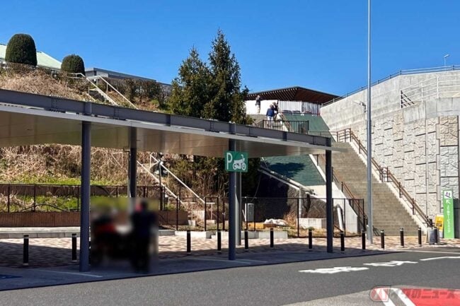 バイクで移動途中に立ち寄ったのは下り側の施設です。上り側には市内の有名店「麺屋ようすけ」が出店したことで話題となりましたが、下り施設には「さのや」があります。階段で上下施設を行き来することも可能です。