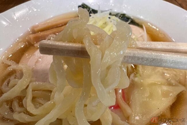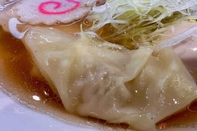 佐野らーめんの特徴でもある手打ち風のちぢれ麺は、スープと絡んで軽やかな食感。スルスルと食べ進められます。この麺がモチモチとした食感だけに、ワンタンの存在はややしつこいかなと感じましたが、それも含めて満足感につながっているのは間違いありません。