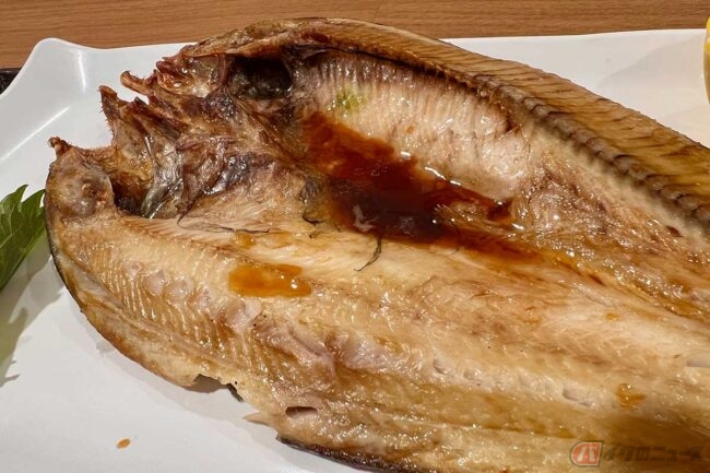 その中から、久しぶりに肉厚なホッケを味わいたいと思い、「ホッケの干物定食」(1500円)を注文しました。