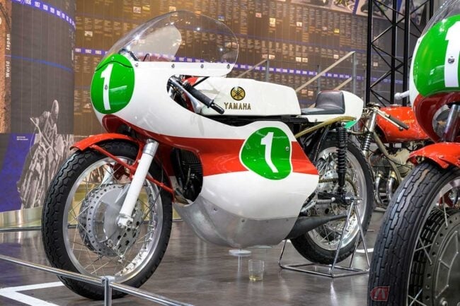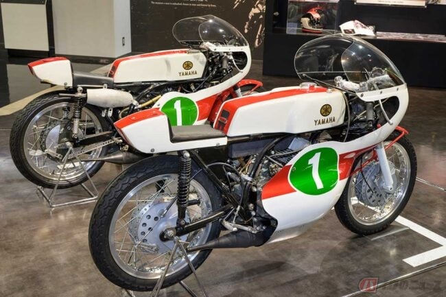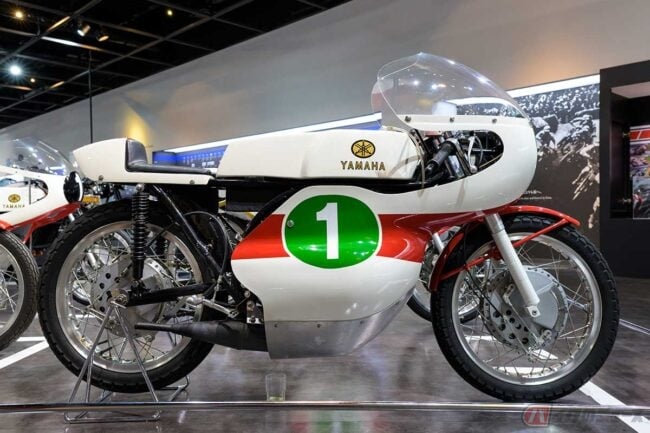 ヤマハの世界ロードレースGPへの参戦初期に初優勝に導き、チャンピオンを獲得するなど大活躍した「RD56」(1965年)は、当時少数派だった2ストロークエンジンで劣勢を跳ね返し、その後のGP新時代を切り拓きました。