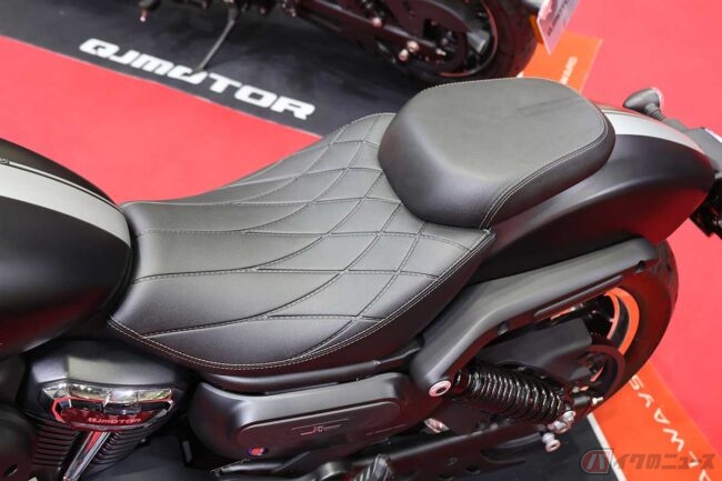 ロー&ロングのクルーザーらしいスタイルは、全長2230mmでシート高705mmと足つきも良く、車両重量は205kgとなっています。