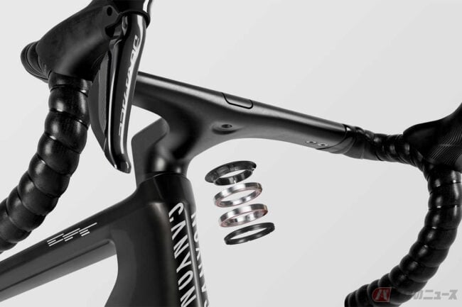 フレーム素材には東レ製T1100およびT800カーボンに加え、YS80ピッチ系ファイバーを採用しています。これによりヘッドチューブ剛性は従来比で約10%向上し、石畳でも正確なライン取りを可能にしています。