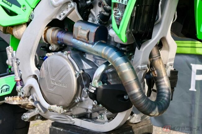 駆動系では、モトクロスに比べてギア比がロングになる傾向がありますね。スピードレンジが高いため、スプロケットの歯数を減らし、より高速域に対応したセッティングに変更されます。