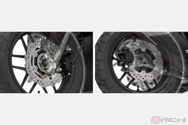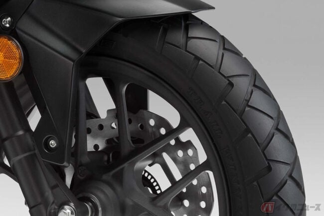 足まわりには、専用開発されたブロックパターンのチューブレスタイヤを装着し、未舗装路での走破性も高めています。ブレーキはフロントにABSを標準装備したうえで、前後ともに軽量なウェーブディスクを採用。スリップしやすい路面での安心感を高めるHSTC(Honda セレクタブル トルク コントロール)も搭載されています。