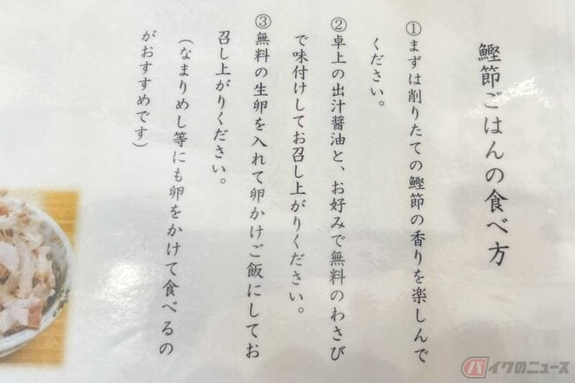 薄く削られたフワフワの鰹節の風味と舌触りは、上品かつ芳醇。削りたての鰹節をたっぷり使った「究極の鰹節ご飯」はこの店の人気メニューのひとつです。