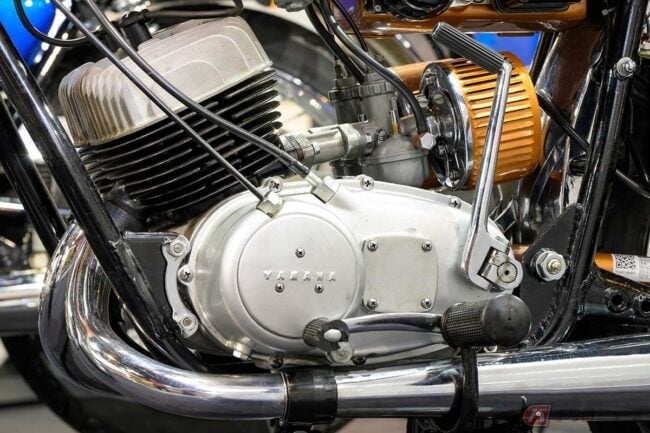 それを実現したのは2連キャブレターや5速ミッション、コンロッドのニードルベアリング、「YDレーサー」譲りのダブルクレードルフレームなど、進歩的で贅沢な装備の数々でした。
