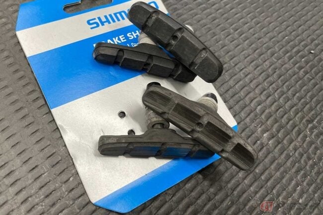 ブレーキシューは、ゴムで鉄(リム部分)を挟んでいるので、消しゴムが減っていくように、使い続けることでどんどん摩耗していきます。新品のシューにはくっきりと3本くらいの溝が掘られていますが、使い続けると溝が浅くなっていきます。