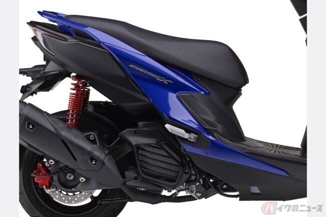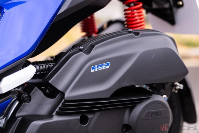 走行性能面では、排気量124ccの水冷 “BLUE CORE”エンジンを搭載。現行「CYGNUS GRYPHUS(シグナス グリファス)」のユニットをベースに、CVT(コンティニュアスリー バリアブル トランスミッション)の諸元刷新、トラクションコントロールシステム(TCS)の採用、マフラーのテールパイプ径拡大などにより熟成されています。