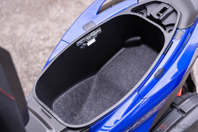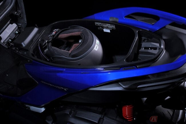 収納面では、効率的なスペース設計により約28Lの容量を確保したシート下収納や、700mlのドリンクを収納できるフロント小物入れを装備。フロント収納部にはQC3.0急速充電対応のUSB Type-C端子対応充電ソケットも備え、シティコミューターとしての利便性を高めています。
