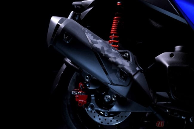 また、フロントのアンダーサイドカバーやマフラープロテクターには鍛造カーボン調のシボをあしらうなど、細部まで軽快でスポーティな印象を作り込んでいます。