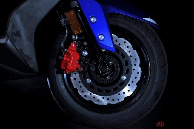 また、スポーティな走行性を支えるために新フレームを採用。CYGNUS GRYPHUS比で縦剛性を約19%向上させるなど、全体の剛性バランスを最適化し、走行中の穏やかな挙動を実現しました。ブレーキシステムも刷新され、フロントディスクをφ245mmからφ267mmへ拡大、リアもφ230mmの大径ディスクを採用し、制動性を向上させています。