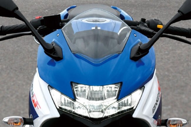 カラーに関してはネイキッドモデルと同様に新色のホワイトが注目されており、すでに数件のお問い合わせをいただいています。ただ、“スズキの伝統カラーであるブルーも捨てがたい”、と悩まれるお客様もおられ、どちらを選ぶか迷われるケースも少なくありません」