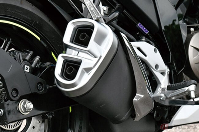 外観デザインは、ワイドで特徴的なLEDヘッドランプや、スポーティさを強調するショートタイプのデュアルマフラーが目を引く仕上がりとなっています。