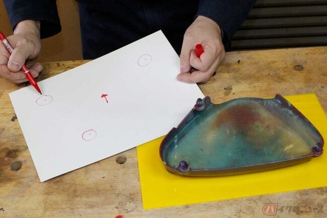 「せっかくだから同じABS素材でサイドカバーを複製しましょう。FRPで型取りしてから複製すれば、細部まで忠実に形状再現できますが、裏側を見た時の質感が異なりますからね。ABSの素材板に熱を加えて曲げて、複製することもできます」との方向性で、実践方法の説明を伺いながら打ち合わせを進めました。