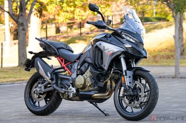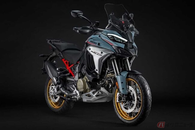 ドゥカティの「ムルティストラーダV4 S」や「ムルティストラーダV4 RALLY」も自動車高低下システムを備え、10km/h以下の低速時はサスペンションのプリロードが瞬時に下がることで足着き性を良くします。そしてスピードが50km/h以上になるとプリロードがプリセット値に戻ります。
