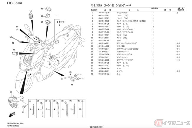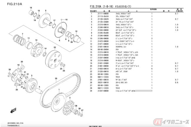 サービスマニュアルとは、バイクの構造や整備方法を詳しく解説した整備用の資料のことです。