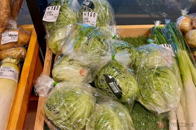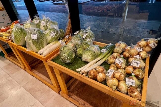 食後はフードコート脇にある地元野菜コーナーをチェックするのがルーティンになっています。「市川PA」の隠れた魅力のひとつで、玉ねぎ1袋350円、レタスや白菜が1玉180円と、近隣のスーパーと比べてもリーズナブルな価格設定で、思わず手に取ってしまいました。