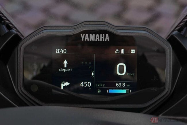 くわえて、視認性のよい4.2インチのフルカラーTFTディスプレイが搭載されているため、スマートフォンと接続することでナビゲーションを表示することも可能となっています。
