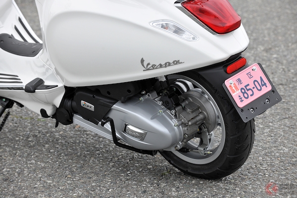 コロンとした丸いお尻が特徴的なのですが、このキュートな丸いお尻のフォルムこそがベスパを象徴するスタイルであり、これが、スズメバチを意味するブランド名「ベスパ」の由来ともなっているのです。