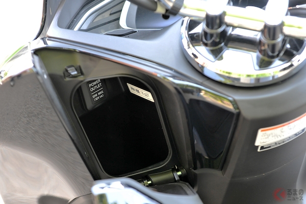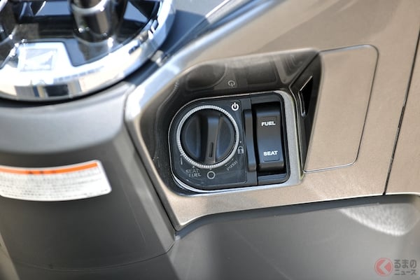 新型はスマートキーを採用しており、携帯するだけでエンジンの始動が可能となります。エンジンスタートはメインスイッチノブを回すだけです。盗難抑止機構として、メインスイッチノブにクラッチ機構が備わっていて、スマートキーを持っていないと回すことができません。ウインカーが点滅して自車の位置を知らせる(アンサーバックスイッチ)装備も加わり、PCXがまた一段と先進的になっています。