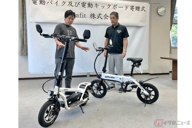 伊豆市長「高校生の通学にも電動バイクを」 グラフィットが電動モビリティを贈呈