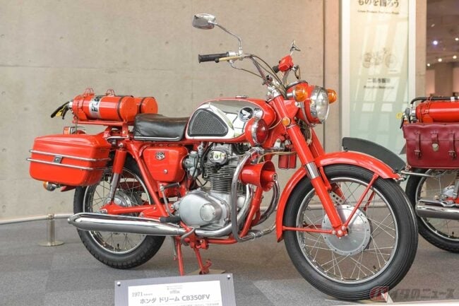 「赤バイ」で火災現場に一番乗り! ホンダ「ドリームCB350FV」は消火器搭載の消防仕様!!
