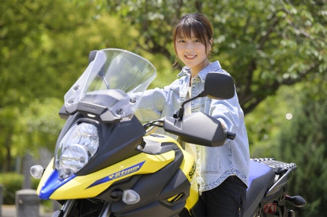バイクでの長距離移動が苦手なライダーに是非乗って欲しい! スズキ「Vストローム650XT」は楽ちんな乗り味が魅力の大型アドベンチャー〜小野木里奈の○○○○○日和〜