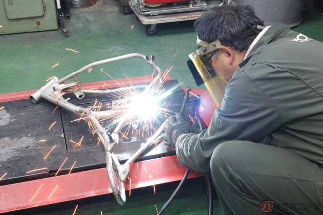 ホンダ旧横型ミニ系「北米専用」モデル「SL70」フルレストア 分解バラバラのフレーム各所の痛みは溶接修理