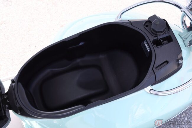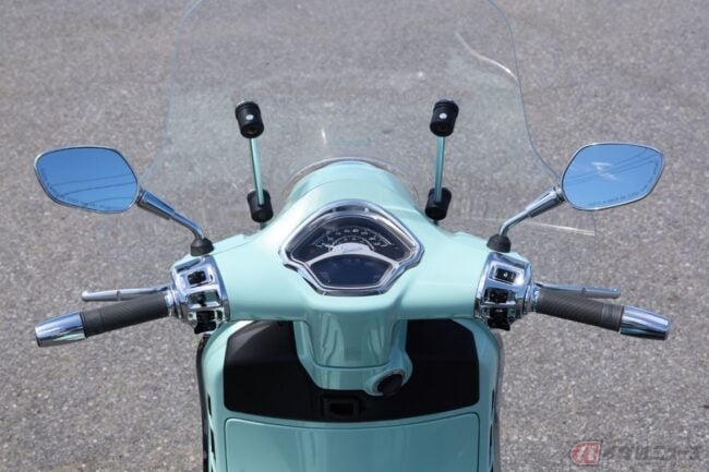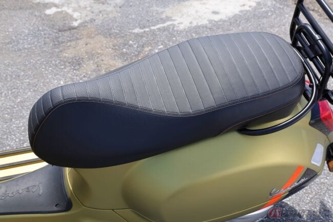「クラシック150」と「スーパースポーツ300」は、同ブランドの「スプリント」や「プリマベーラ」よりもひと回り余裕のあるラージボディを骨格に持ちます。メッキパーツの仕上げやシート表皮の差異を除けば大部分のコンポーネントを共有し、ただし車名につく数字の通り、排気量に違いがあります。