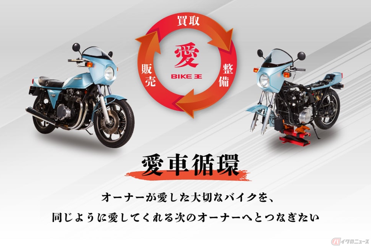 「そんなに安いと車両の状態が心配……」という方もいるかと思います。しかし近年、バイク王では茨城県つくばみらい市と神奈川県茅ヶ崎市に、往年の名車を展示し、実際に購入可能な車両もある「バイク王絶版車館」を設立。さらに、2023年8月19日にオープンした「バイク王世田谷本店」の地下には広大な整備エリアを有しており、ただ“買取→販売”だけでなく、“買取→整備→販売”のサイクルが確立されています。バイク王ではこれを「愛車循環」と呼び、バイクを消耗品として捉えず、1台1台愛情を込めて扱い、世代を超えてバトンをつないでいく大切な役目を担っているのです。