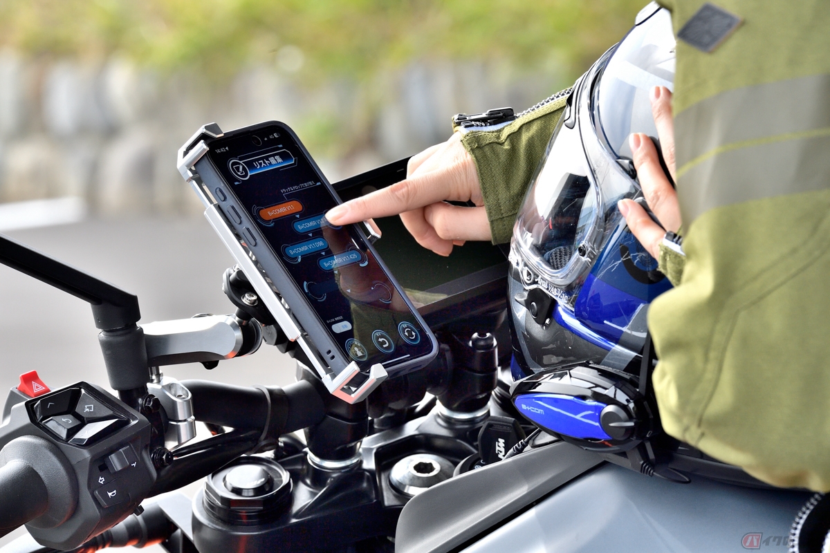 ちなみに、スマートフォンのBluetoothをオンにして、アプリ「B+COM U Mobile APP」を使用すれば、さらにビーコムを便利に使うことができます。
