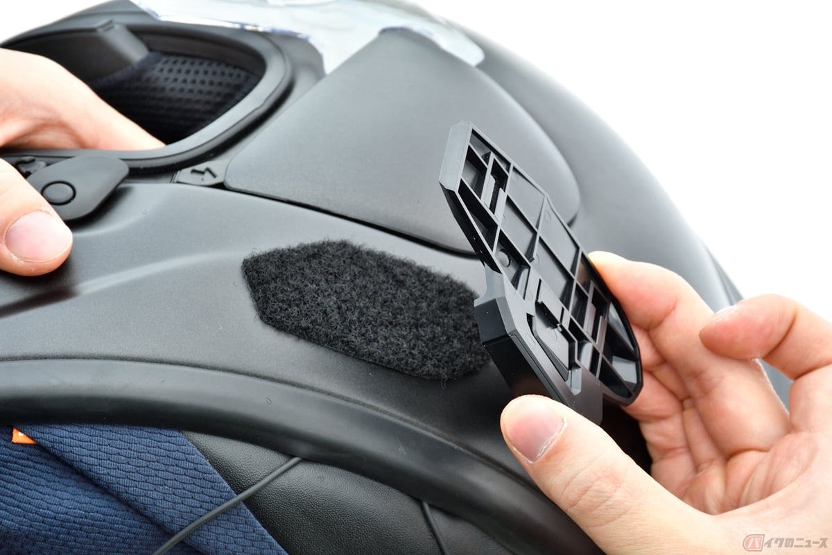 ヘルメット側に装着するベースプレートも新しくなっていて、簡単に装着できます。ロック機構を搭載してるから不意にズレてしまうトラブルを防いでくれるので安心。取り外しもワンタッチでロック解除できるのでカンタンです。