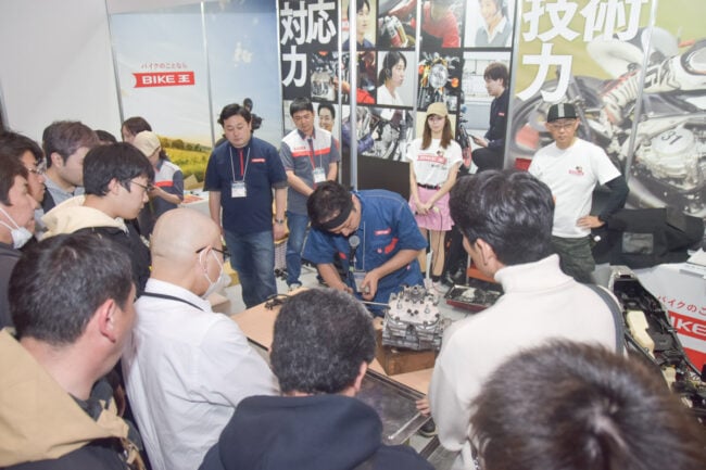 今回のブースは、バイク王の販売サービスを支える高い整備力を会場で披露し、来場者に見てもらうことで、バイク王で購入した車両はしっかり整備されて安心して乗れると来場者に伝えることを目的としているそうです。
