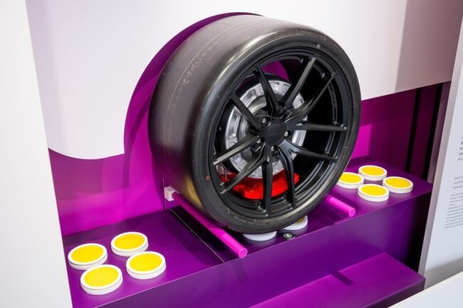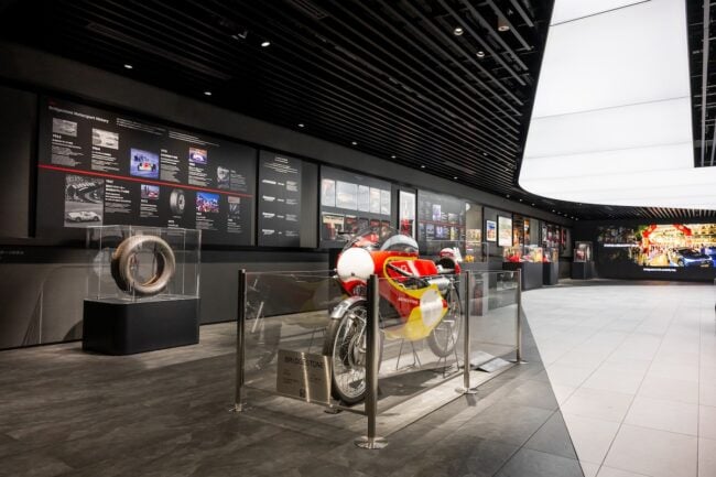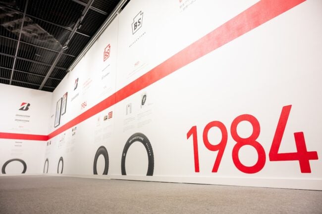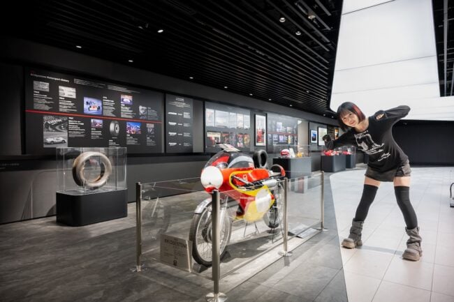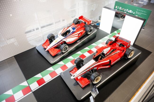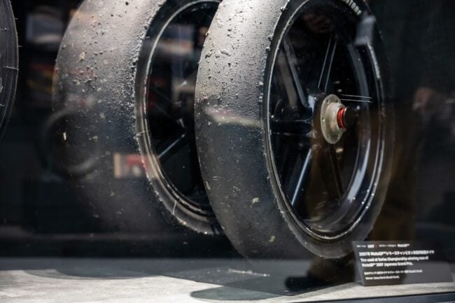 「Motorsport Gallery ~共創の歴史とこれから~」では、モータースポーツの歴史をタイヤを通じて見ることができます。MotoGPやF1を実際に戦ったタイヤの展示は圧巻のひとこと。