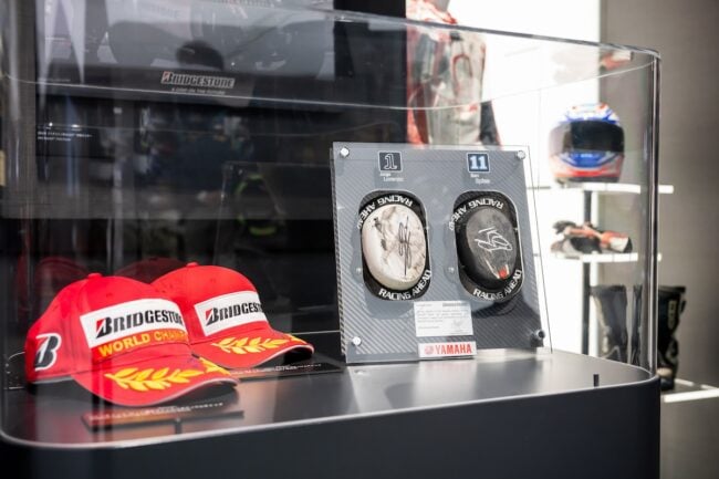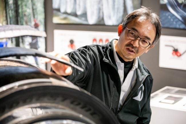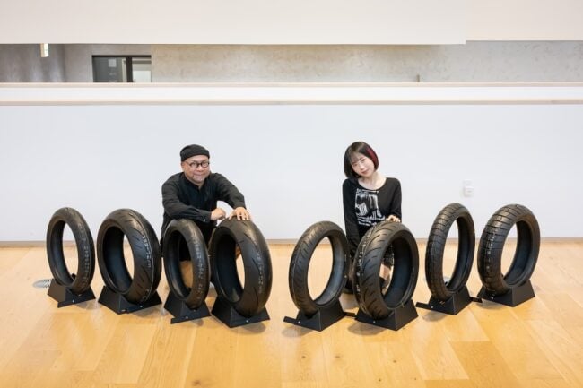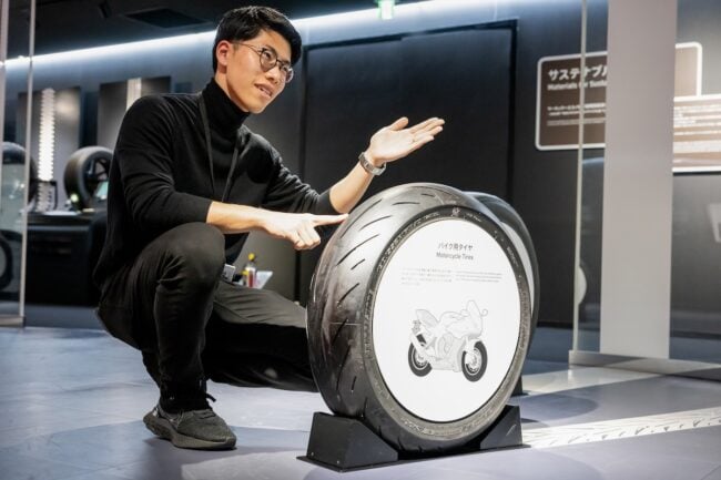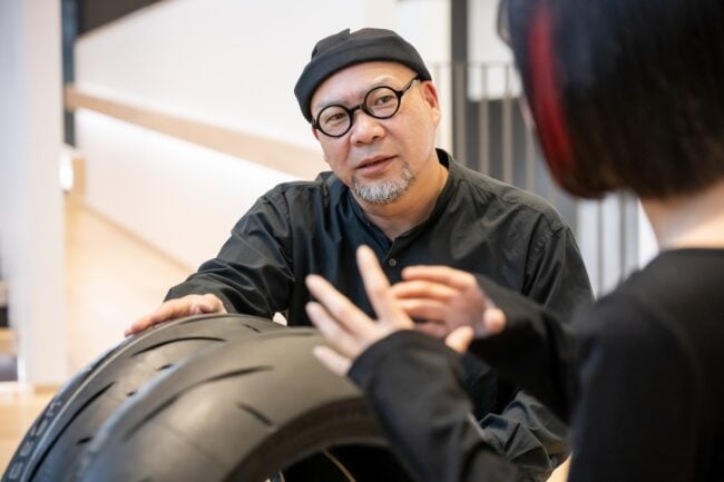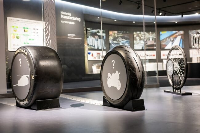 さて、今回は特別に、バイク用タイヤの開発などを行う同社のグローバルMCタイヤ事業部 戦略企画課 福永匠さんに案内してもらい、ギャラリーを巡ってみましょう。