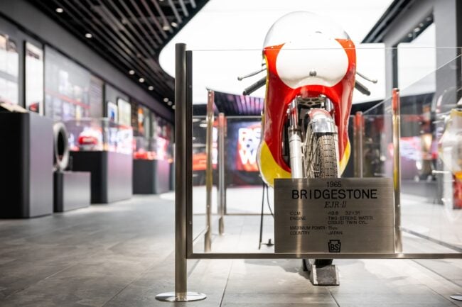 1965年製のロードレーサー・ブリヂストンEJR-IIも必見です。そういえば、ブリヂストンはかつてバイク本体の製造も行っていたことはご存じですか? 初めて知った人はびっくりしますよね!
