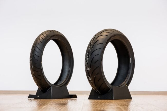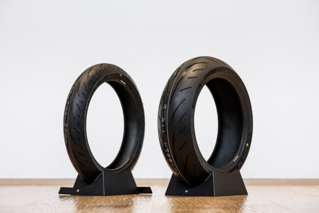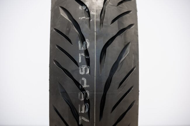 佐賀山「タイヤはバイクが路面に接する唯一のパーツです。つまり、いくらエンジンにパワーがあっても、ブレーキが効いても、高性能チェーンでフリクションロスを低減したとしても、しっかりと性能を発揮できるタイヤでなければ、それら全ての意味がなくなってしまうと言っても過言ではありません。タイヤがツルツルと滑ってしまっては、転倒してしまう危険もあります。